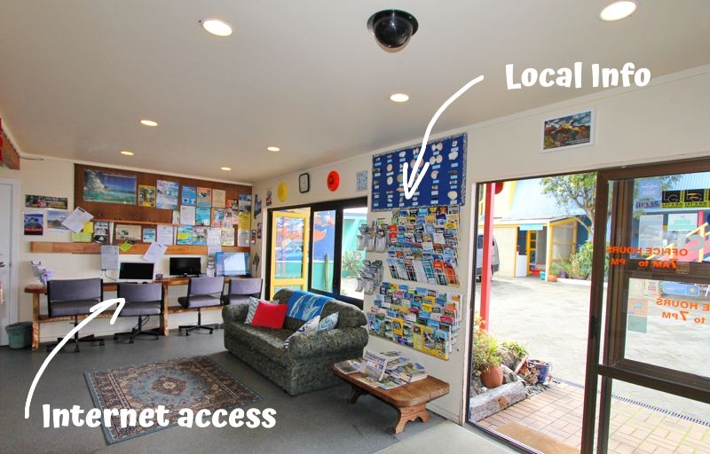 On The Beach Backpackers Lodge is situated directly opposite Buffalo Beach on SH25. It is a 10 minute stroll along the beach front to the Whitianga township offering fine restaurants, cafes & shops. Perfectly situated for Hot Water Beach & Cathedral Cove access. Coastal walks & bush treks nearby.